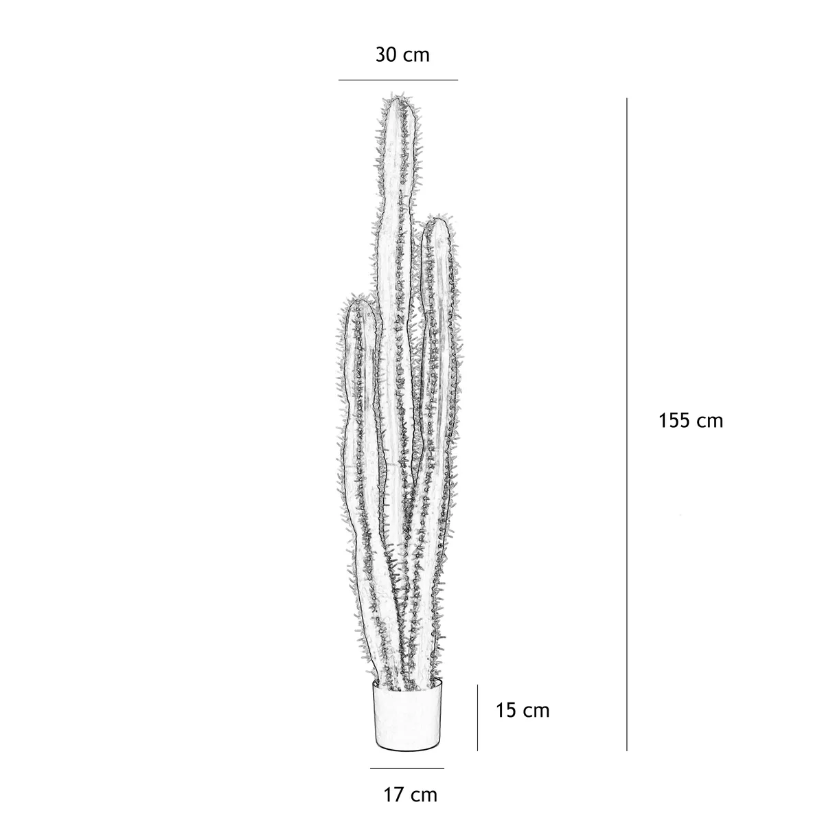 Ce cactus artificiel se distingue par son design soigné et ultra réaliste. Chaque détail – de ses épines fines à ses nuances de vert subtiles – imite parfaitement un cactus naturel. Sa grande taille de 155 cm, associée à ses trois troncs structurés, lui confère une silhouette élancée qui attire immédiatement le regard.