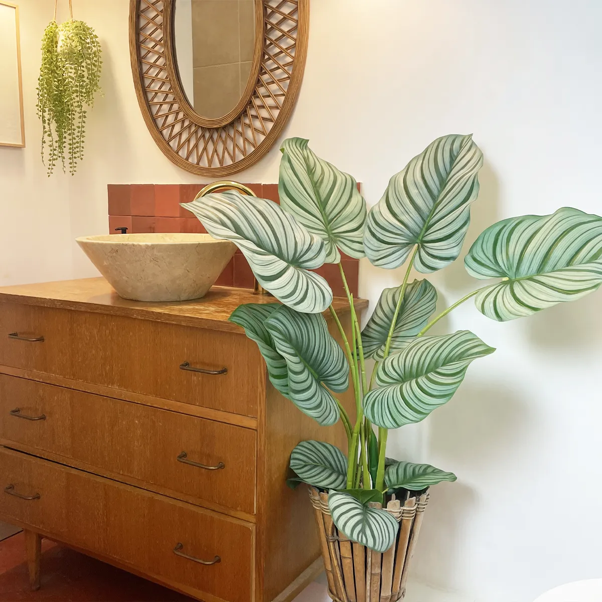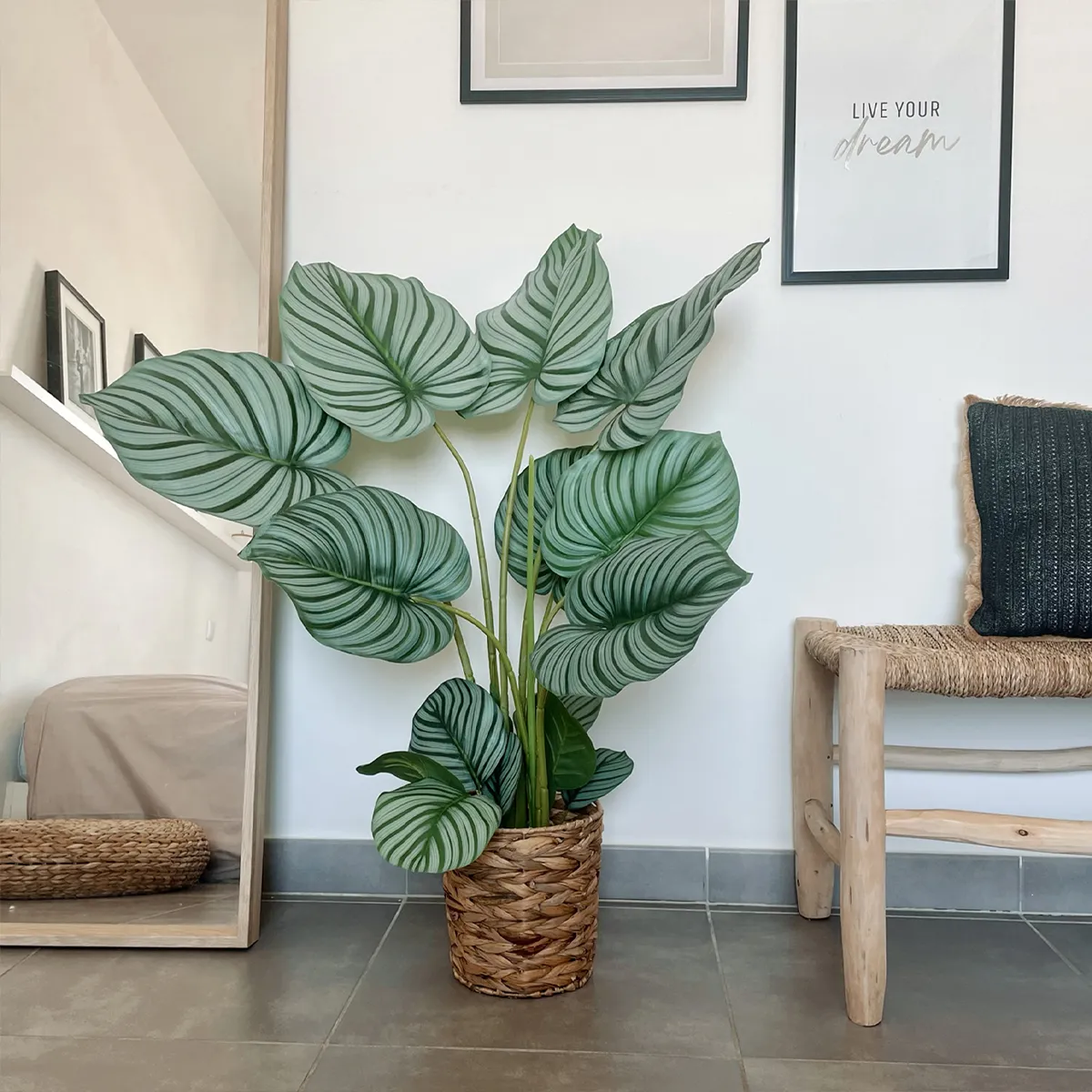 Pour enrichir votre décoration et créer une ambiance tropicale, associez votre calathea artificiel avec :