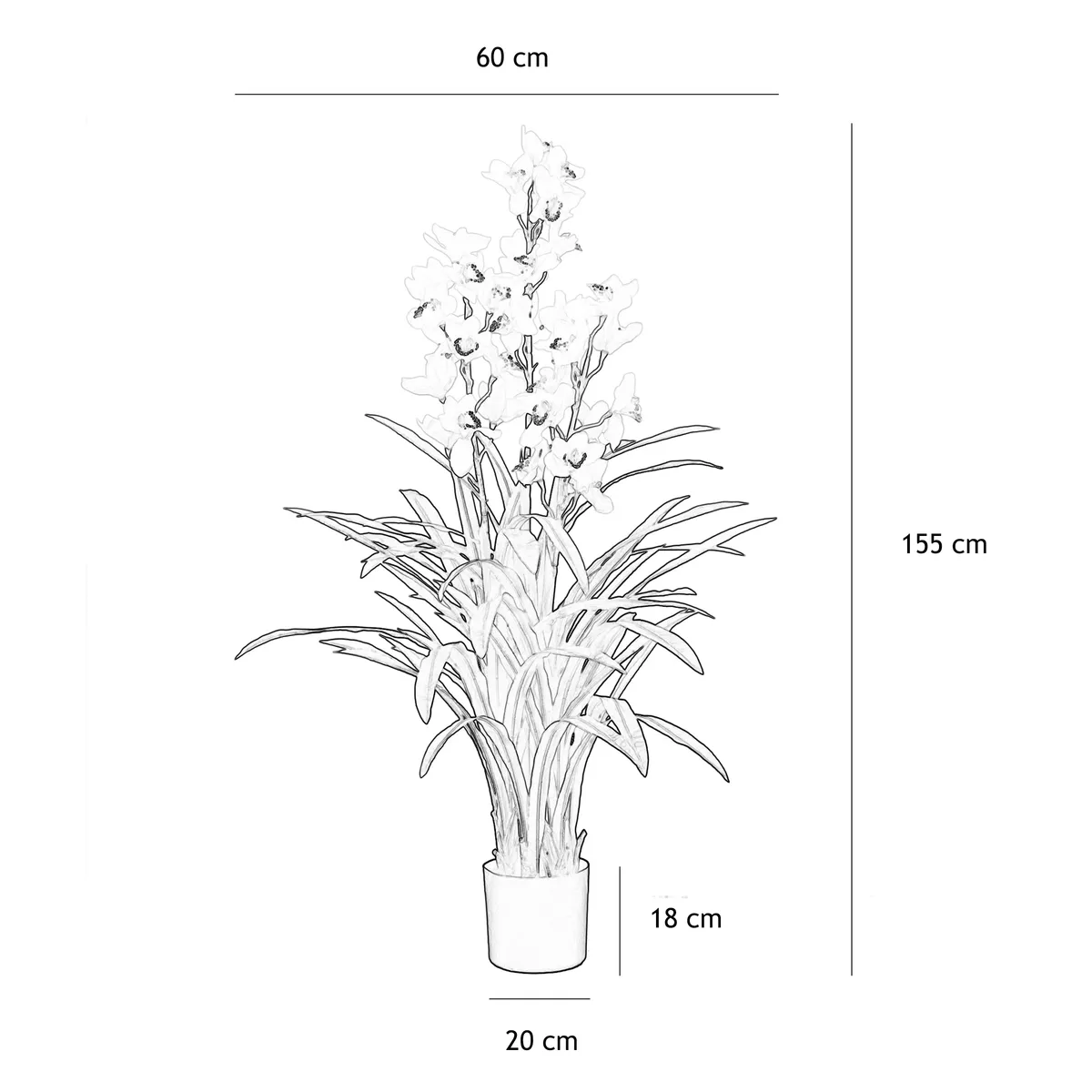 Cymbidium artificiel – Hauteur 155 cm | 30 fleurs blanches
