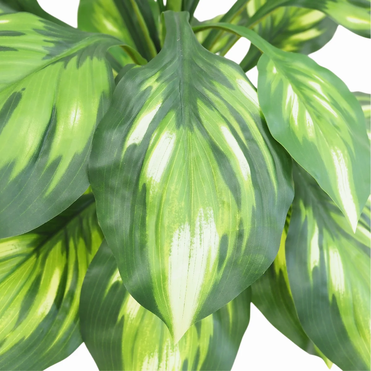 Ses feuilles généreuses, aux nuances de vert profond et de crème, imitent le dieffenbachia camilla, aussi appelé dieffenbachia reflector. Chaque nervure, chaque texture a été soigneusement travaillée pour un effet bluffant. On retrouve tout le charme graphique de la plante tropicale, sans les risques liés à sa toxicité ni les exigences d’entretien.