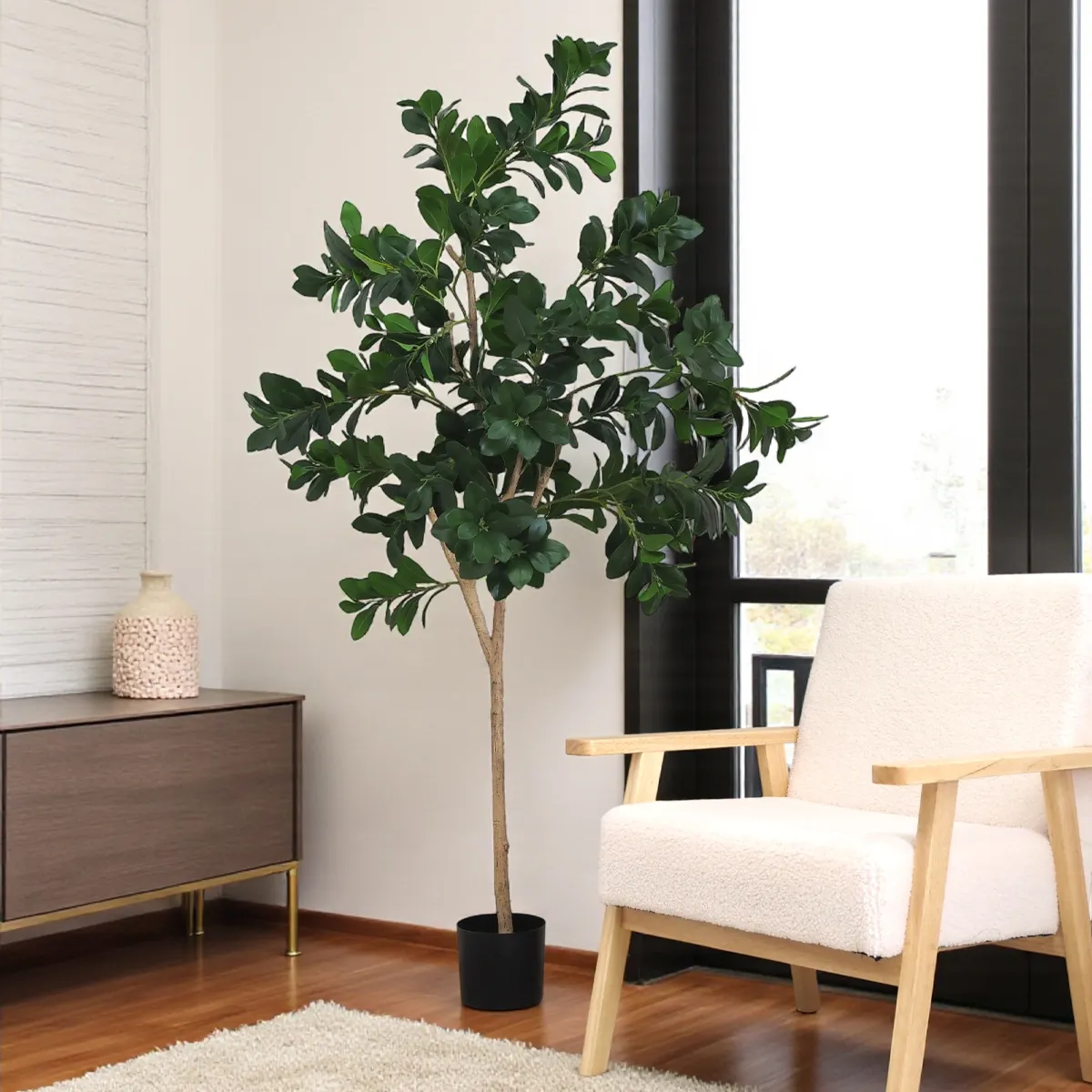 Inspiré du laurier sauce, cet arbre artificiel grande taille séduit par son tronc robuste, son feuillage texturé et sa silhouette équilibrée. Il offre un rendu très réaliste, idéal pour habiller un coin vide, décorer un salon, valoriser une entrée ou structurer une pièce à vivre. Sa hauteur de 180cm lui permet de s’imposer avec élégance, tout en créant une ambiance chaleureuse et végétale.