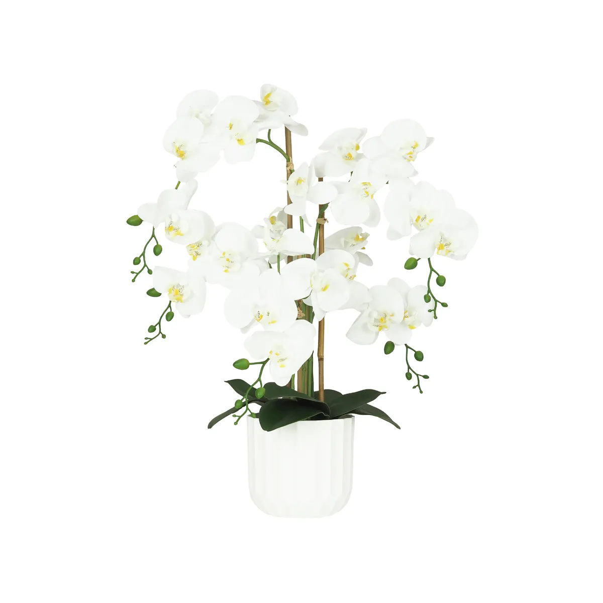 Pour un effet encore plus impactant, associez cette orchidée blanche à d’autres orchidées artificielles de couleurs variées. Vous pouvez aussi l’accompagner de tiges d’eucalyptus artificielles, de chutes de feuilles ou de pampas pour créer un centre de table élégant ou une composition florale sophistiquée.