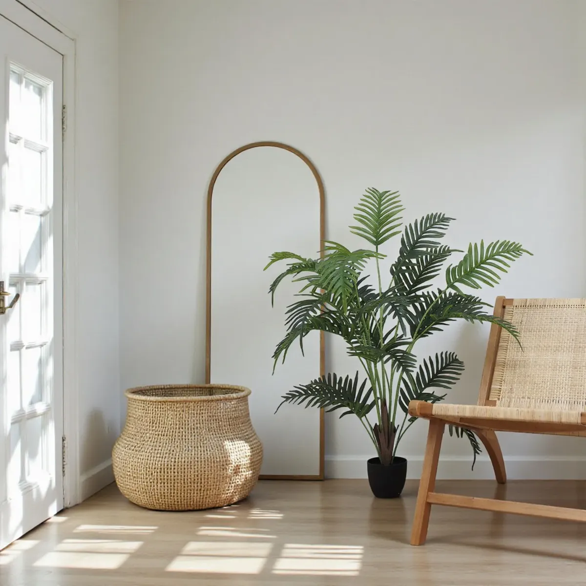 Chaque détail a été conçu pour imiter la texture et la couleur d’un vrai palmier, avec ses nuances subtiles de vert et ses feuilles légèrement arquées. Difficile de deviner qu’il s’agit d’une plante artificielle haut de gamme.
