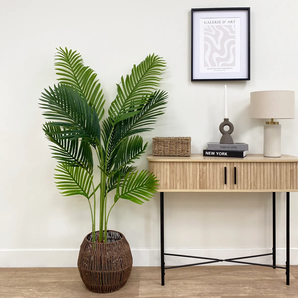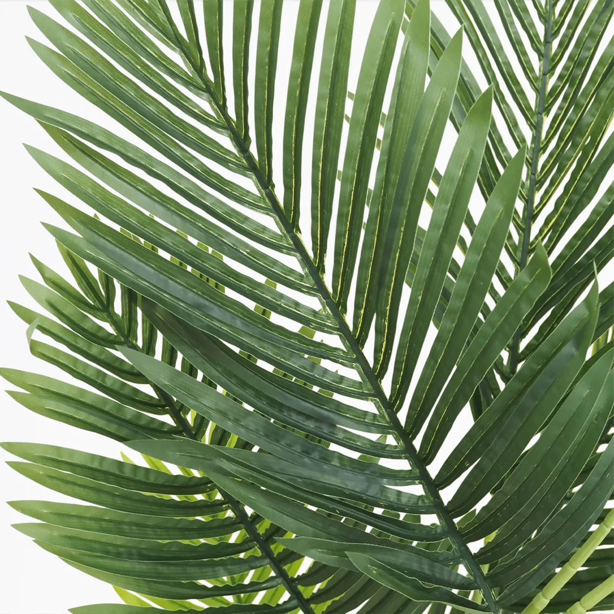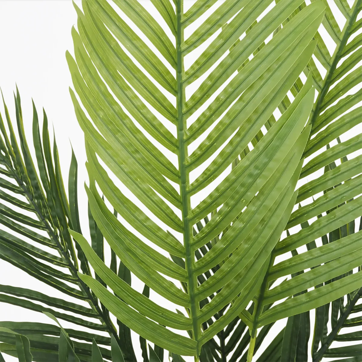 Ce palmier artificiel se distingue par ses palmes fines, nervurées et légèrement souples, qui reproduisent fidèlement l’allure d’un palmier naturel. Son feuillage dense crée un bel effet volumineux, idéal pour habiller un coin de pièce ou structurer une décoration tropicale. Sa teinte verte éclatante apporte instantanément de la lumière et de la douceur à votre décor.