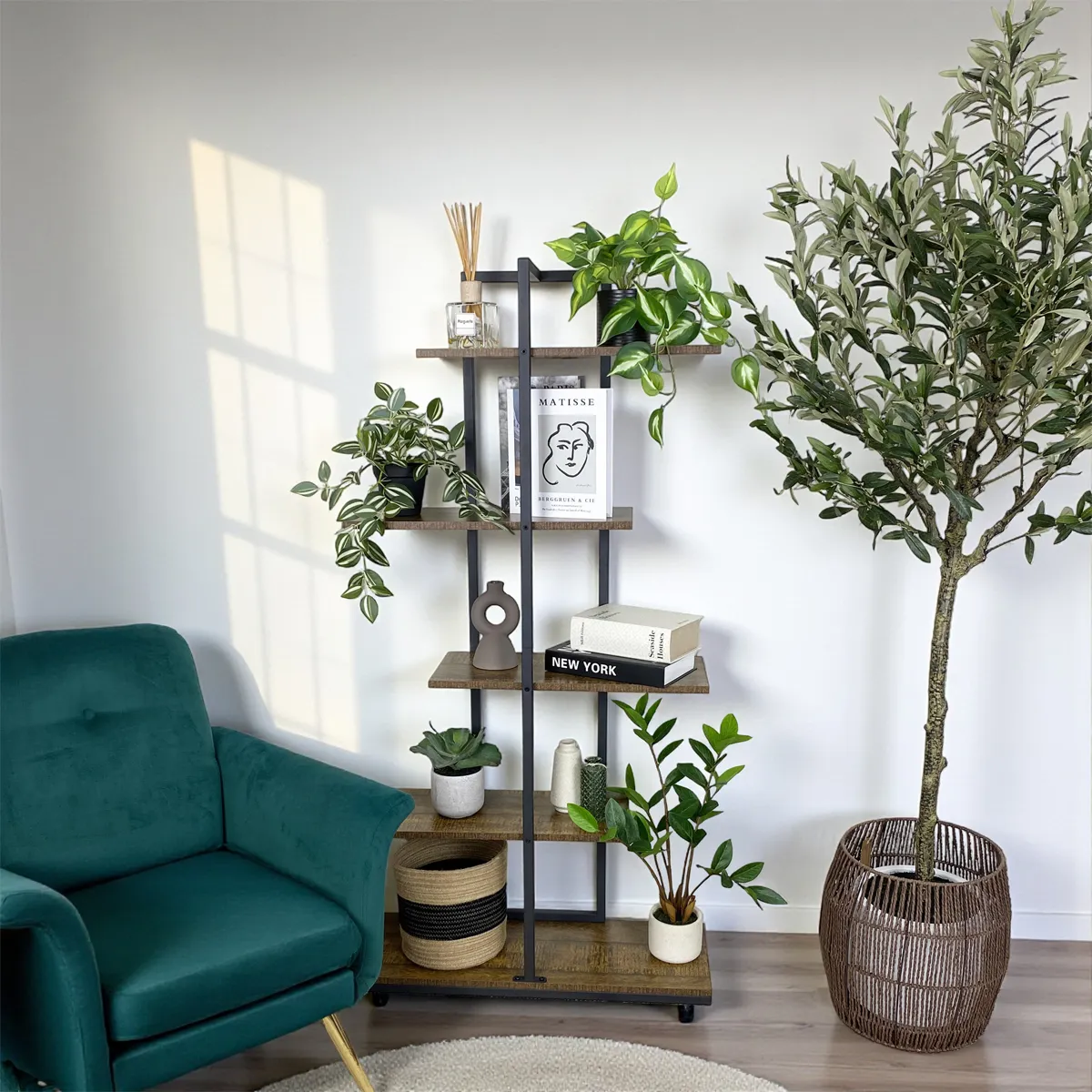Pour un effet jungle urbaine, associez cette plante avec des fougères artificielles, des succulentes ou des vignes retombantes. Vous pouvez également intégrer des fleurs artificielles colorées pour apporter de la vivacité. Variez les hauteurs et les textures pour une décoration dynamique et harmonieuse.