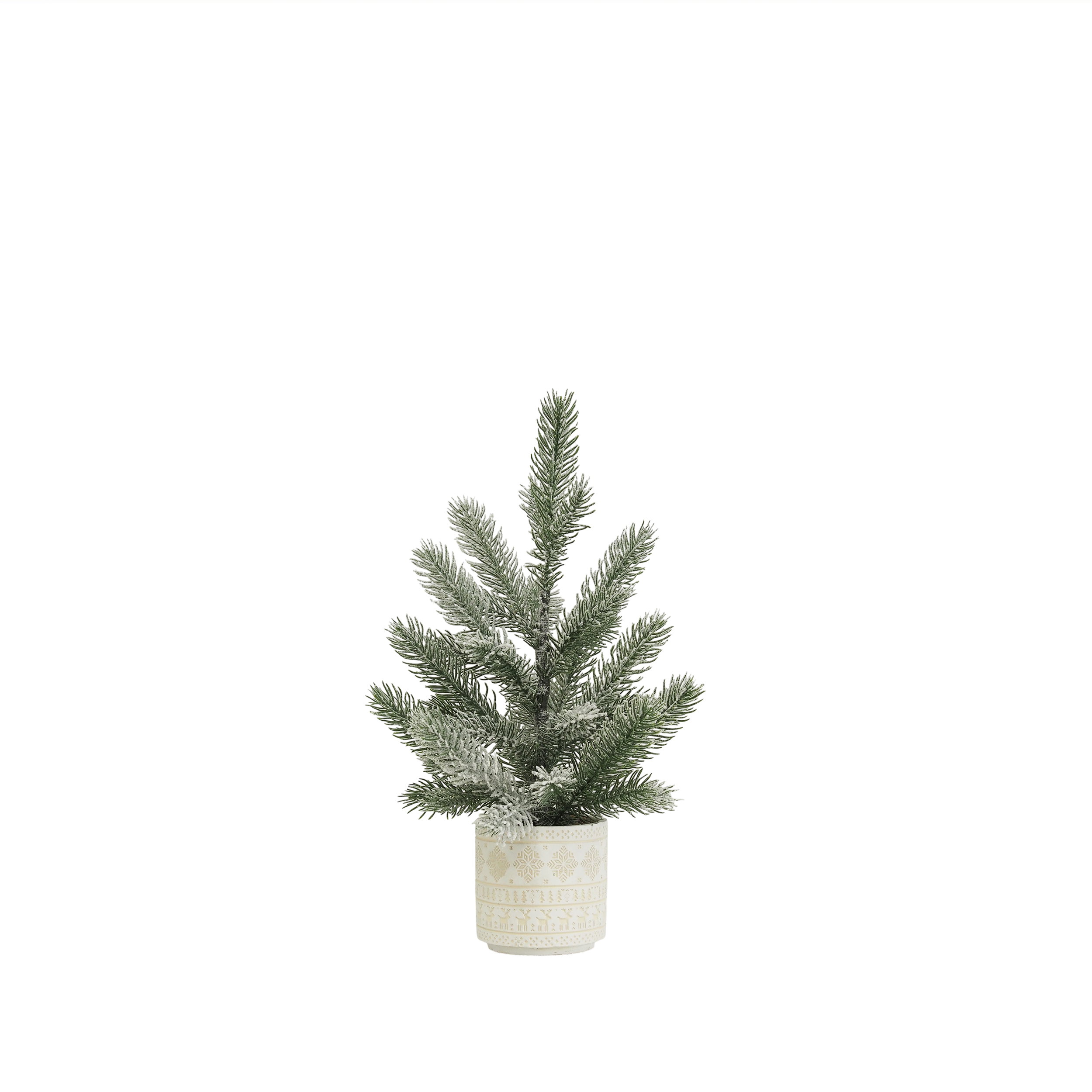 Chaque branche est travaillée avec soin pour imiter l’allure d’un véritable petit sapin enneigé. L’effet neige subtilement appliqué apporte une touche authentique et festive, idéale pour créer une atmosphère cosy et conviviale. Que ce soit en solo ou accompagné de bougies et guirlandes lumineuses, il embellit vos espaces avec douceur.
